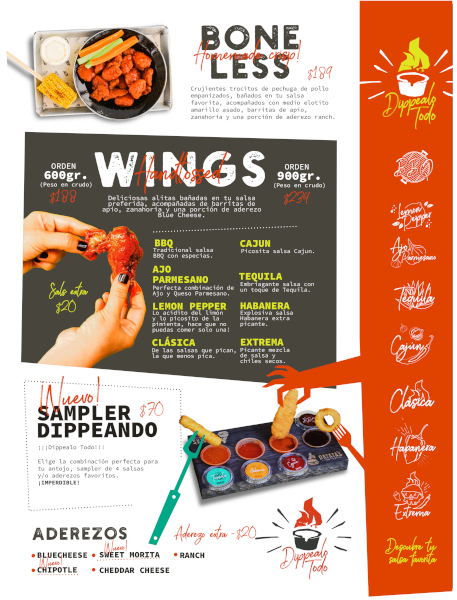 Sómos un lugar especializado en Hamburguesas 100% al carbón, Alitas en 8 tipo de salsas, ensaladas y más.